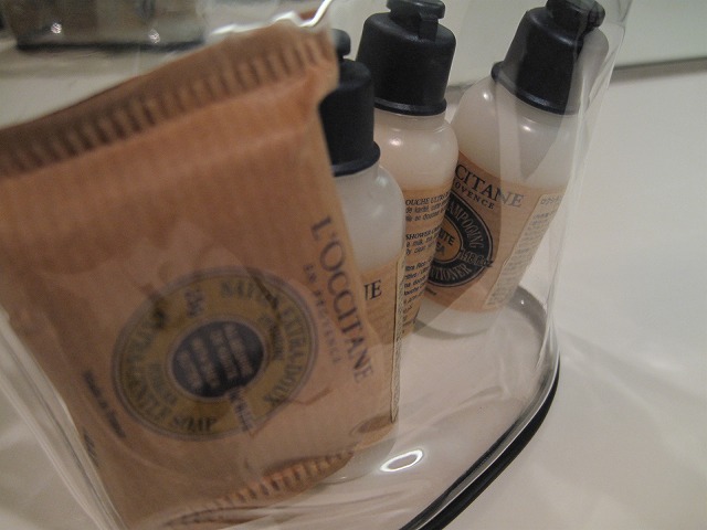 シャワールームにバスタブは無いものの、ホテルと同じレベルのファシリティでさっぱりとする事が可能でした。またアメニティもロクシタンを選択されており非常に満足できる内容でした。ロクシタンのアメニティキットはラウンジの受付で頂く事ができました。
