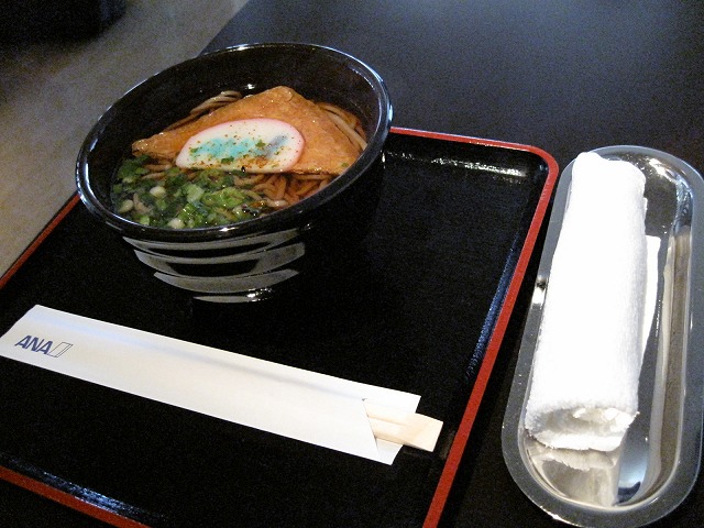さっぱりしたところで、小腹がすきましたので毎度おなじみのANA饂飩を頂きました。他の食事に関しても流石ANAと納得する物が多く満足しました。饂飩を食べながら横を見ると、別の部屋があります。これが何かは分かりませんが、最初は鏡かと思っていましたが、良く見ると別の部屋となっていました。次回、聞いてみようかと思います。
