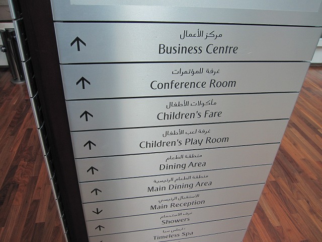 ドバイ国際空港のエミレーツ専用ターミナルであるT3のボーディング階より一つ上にラウンジは準備されています。そうですファーストラウンジの隣に同じ広さでビジネスラウンジはあります。エレベータを登って右手がファースト、左手がビジネスラウンジなります。