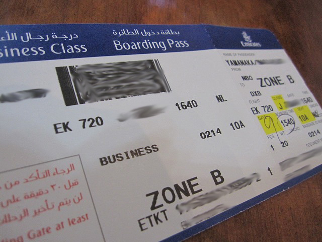 ケニヤ共和国のナイロビにあるジョモ・ケニヤッタ国際空港からドバイ国際空港への戻りももちろんエミレーツを選択です。残念がらこのフライトにはファーストが既に満席で取る事ができませんでした。さてこの事は吉と出るか・・凶と出るか?