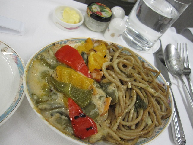 さてお楽しみの食事ですがこれもキツイ・・・なんか駄目な時は何をやっても駄目と感じるのでしょうかね?このパスタ?麺?を見て例の中国国際航空公司のフライトを思い出してしまい。もうアウトです。諦めて到着まで寝ましたが、なにか後味の悪いフライトになってしまいましたね・・・