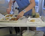 私の準備が整った頃に飛行機も移動を開始します。ふわりと浮き上がる感じのA380の離陸は大きな機体とは思えない感覚です。離陸後にアミューズや飲み物の話もありましたが、シートベルトのサインが消えて直ぐにベッドモードに変更していただきます。ベッドメイクをしながら朝食の時間とシャワーの時間を確認していただいて時間になったら起こして頂くようにします。