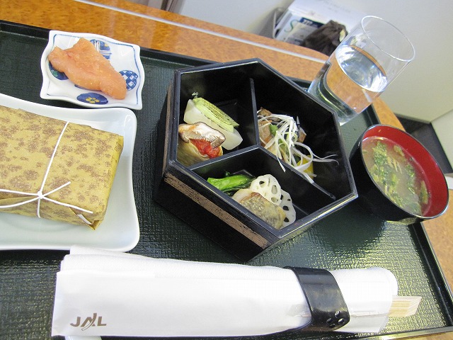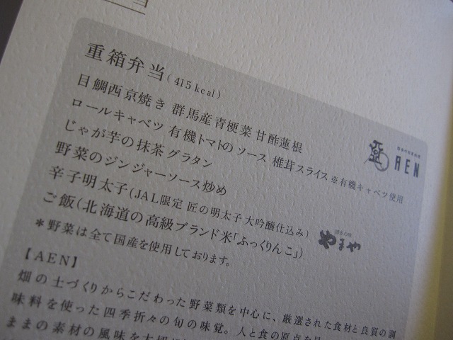 11月の食事は重箱弁当です。こちらを朝食代わりに頂きます。今回は非常に気が効いた素敵なCAさんが多かったです。