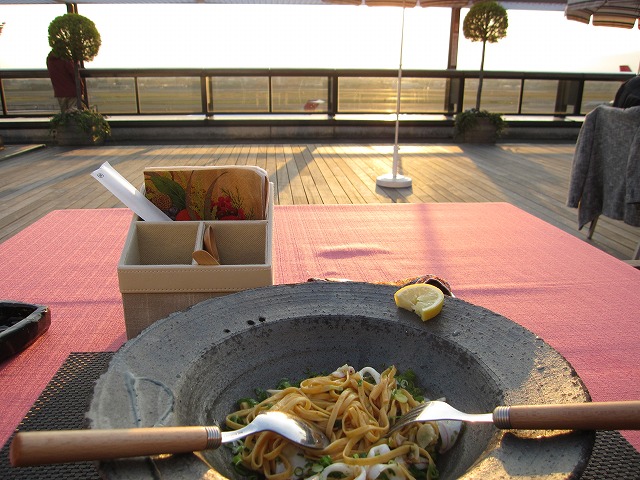 伊丹で書類を渡して私のミッションは無事に終了です!今回は少し時間があったので初めて伊丹空港の展望デッキに行ってみました。流石に屋外で非常に気持ち良かったです。良く見ると端の方に良い感じのカフェがありました。せっかくなのでパスタを頂きます。スタッフも非常に気持ち良く食事を提供してくれます。日陰を作るためにパラソルを移動させてくれたり、心地よい会話で楽しませてくれました。伊丹空港ももう少し楽しめそうです。