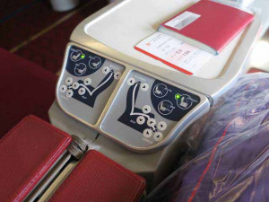 助かったのはACとUSBのアウトレットです。携帯電話の充電が満足にできていなかったのでフライト中に概ね充電完了です。USB側はハイパワーでは無かったのでACアウトレットに変圧器を入れて充電です。