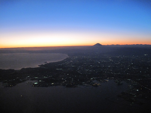 羽田を出発した時は最高の天候で、富士山までハッキリと見えました。冬は空気が澄んでいていい雰囲気です。