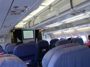 座席のアブレストは2ー2―2の7列配置です。最終的には50%ぐらいの搭乗率になりました。