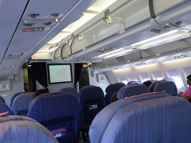 インターナショナル向けの乗客とドメスティック向けの乗客が機内で混在し、搭乗アナウンスも間違えるという混沌としたフライトでした。しかし混乱なく到着するのはタイ国際航空らしいです!