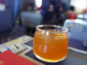 ウェルカムドリンクのオレンジジュースを飲みながら出発を待ちます。少し遅れましたが問題ない程度です。