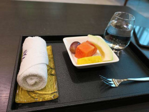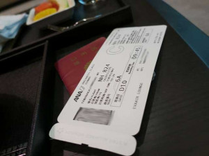 食事を頂いていると渡したパスポートがANAのチケットと共に手元に戻りました。本当に航空会社のカウンターに行かずして発券されました。うーん色々と規格外の造りです。