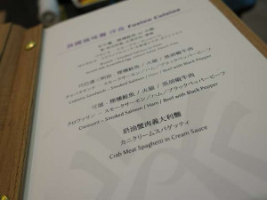 食事も完全にレストランです。頂いたメニューから選びます。今回は既にサジェスチョンのアドバイスを頂いていたので「タロ芋とスペアリブのビーフン入りスープ」と私だけだったら絶対に選ばないアイテムをチョイスです。何気に選びましたが良く見たら日本語ですね!折角なので他にも数品選んでおきました。