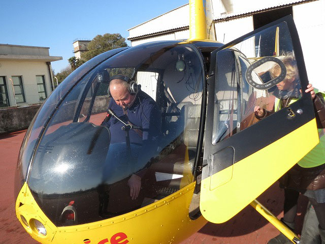 既にパイロット側は準備できているらしいので早速駐機場に向かいます。今回のヘリコプターはR44です。これは小型ながら俊敏な機材なので私も好きです。残念ながらコパイの位置のサイクリックやコレクターは取り外されていました。残念・・・・
