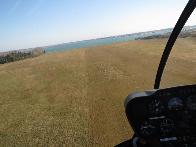 R44に乗り込んで準備です。シートベルトを付けてヘッドセットを付けてパイロットと準備が完了したところで早速エンジンスタートです。毎度のことですがヘッドセットのマイクを口に近づける事を忘れてマイクを使いにくくしてしまうので今回は気を付けて唇と当たる位置に最初からセットです。