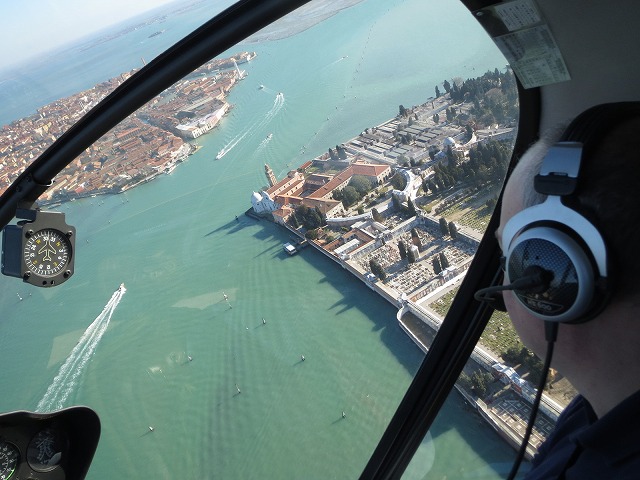 もう少し町の上を飛びたいとリクエストしましたが町の上空は飛行禁止区域なので入れないとの事です。でもこの角度から見るヴェニスの町は最高です。陸と海と空と3方向から見たヴェネチアは一生忘れないでしょう。
