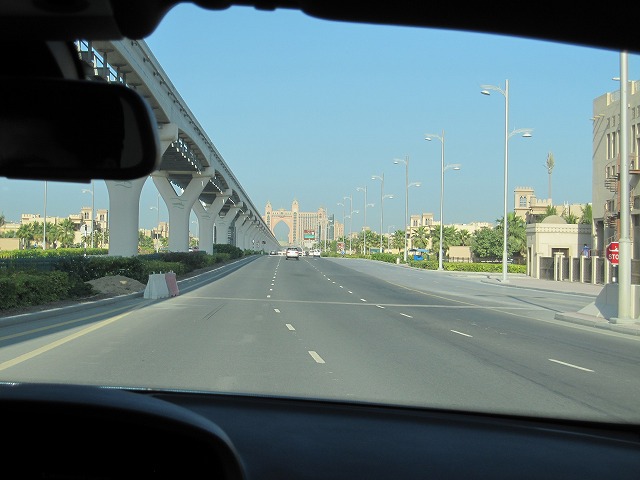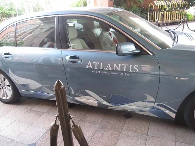 車まではポーターが荷物を運んでくれます。準備されていた車はBMW7シリーズです。しかもデザインが凄い!BMWにここまでペイントしている車は見た事ありません!空港からホテルまでは30分程度ですが、人工島のThe Palmに入ると景色が変わってきます。うーん アトランティスに近づいていく感じがガンガンしますね。