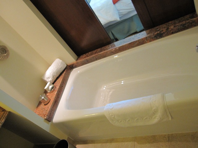 バスルームは最近流行のリビングと貫通型+バスタブとシャワールームが分離です。意外とリビングと貫通しているパターンは好きで、アトランティスパームの宿泊の場合だとそのまま外の雰囲気を味わいながらお風呂の湯船につかる事が出来ます。普段はカラスの行水ぐらいですが、ホテルのお風呂だと30分ぐらいは平気で楽しんでしまいます。