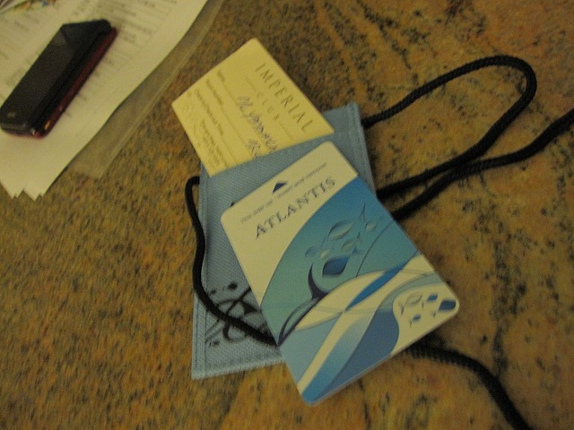 ルームKEYは磁気カード+フォルダーです。このセットは非常に重要です。なぜならホテルは一般開放されている部分と宿泊部分が分離されているのですが、そのチェックポイントではガードマンが立っておりカード又はフォルダーを提出すると細かい事を言わずに中に入れます。