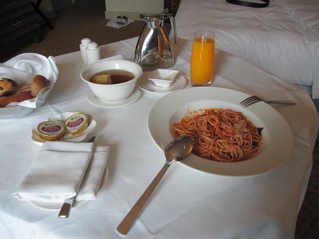 最初の宿泊は時差ぼけのためレストランが空いていないタイミングで食事を取りたくなったのでルームサービスです。流石に世界的に標準な内容で頂きました。悪くはありませんね!
