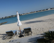 デッキを横から抜けていくとビーチに出ます。この手前のサンラウンジャーもそれぞれの部屋についているという贅沢仕様です。ビーチは遠浅で泳ぐ事はできませんでしたが散策は楽しめました。