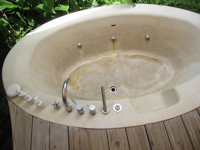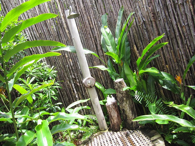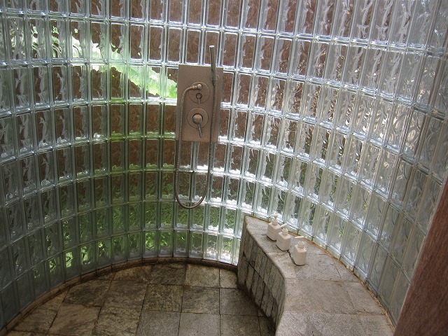ここをバスルームと呼んでいいのか私は躊躇するほどのサイズです。シャワーが二か所あり一つは完全に露天です。囲まれているシャワー室も解放感満点です!準備されているシャンプーなどは十分に環境に配慮されているようです。バスタブも大きなものが準備されています。