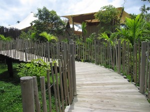 部屋は「2番」です。レセプションから2番目に近いビラですが、部屋の前に車を止めると既に別世界です。部屋なのにジャングルです!もう信じられないほどの内容です。素足なので熱いのですが木の橋を通過して部屋に入ります。これは部屋ではなく完全にビラですね。