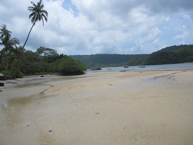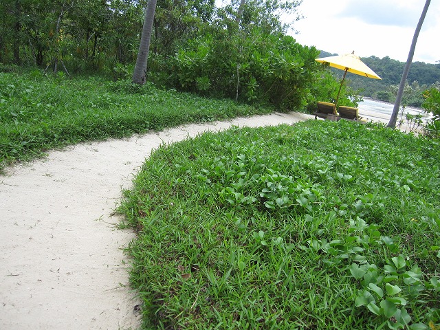 デッキを横から抜けていくとビーチに出ます。この手前のサンラウンジャーもそれぞれの部屋についているという贅沢仕様です。ビーチは遠浅で泳ぐ事はできませんでしたが散策は楽しめました。