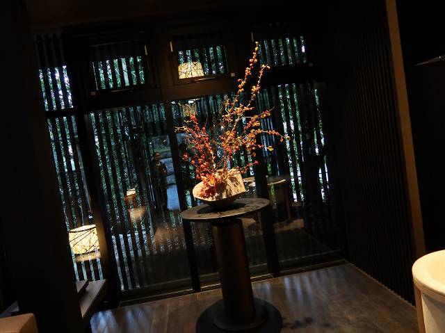 車付けに止まり、外に出るとアマネムでお世話になったスタッフの方が迎え入れてくれます。重厚な扉を前に話は弾んでしまいます。入口で既にスタッフが8名ほど対応して頂きます。京都駅よりかなり涼しく、紅葉の時期にはまだ早いのですが少し木々に赤見がかっています。