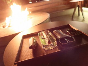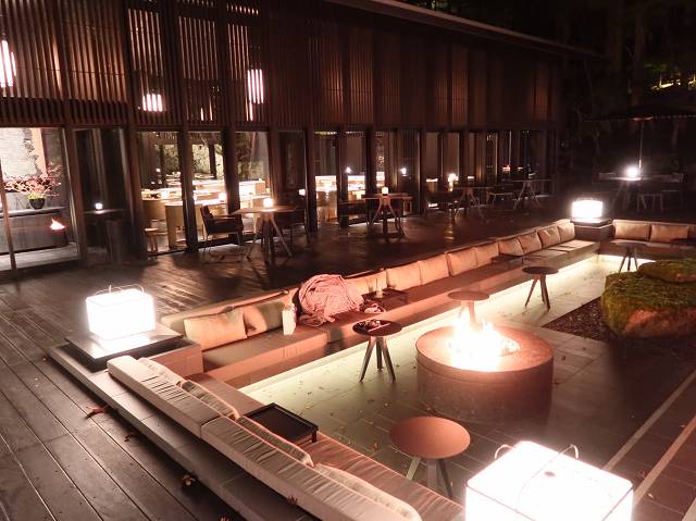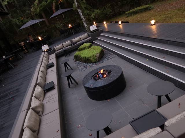 アマンと言えばスパとシガーです。京都ももちろんシガーが準備されています。場所は先ほどのザ・リビング・パビリオン バイ アマンの庭です。庭と言っても特別です。少し掘り下げた場所にファイヤーピットが設けてあります。アマネムでもあったアレです。