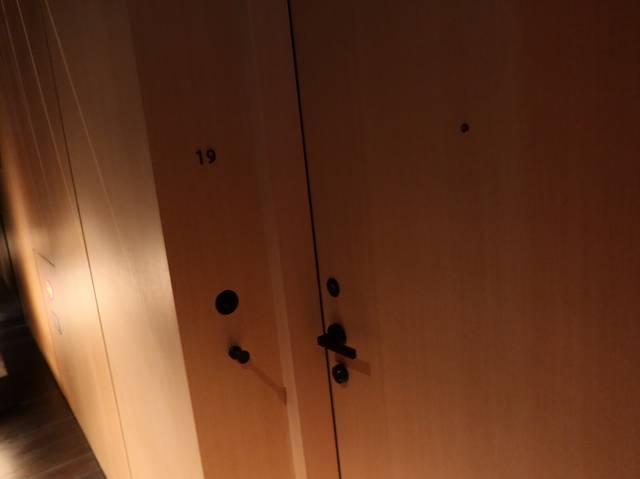 建物に入り一つ目の部屋が私の宿泊場所になります。真っ新で清潔感あふれる扉です。新聞が届けられたり、DND(入室お断り)の札が掛けられるようになっています。