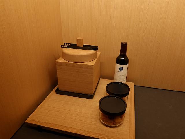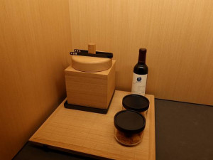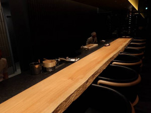 カウンターも一枚板で大きく準備されています。奥にはワインセラーも見えました。敷居を閉めれば6人分の個室が二つ取れるようになっていたので接待にも使えそうです。