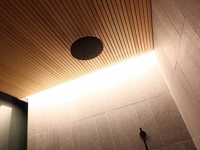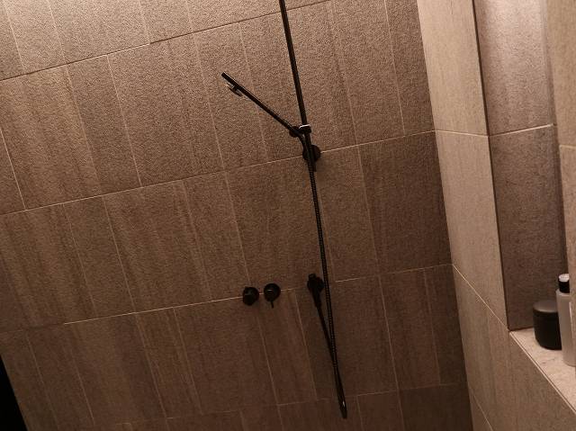 ハンドシャワーとレインシャワーの二種類が準備されています。ハンドシャワーの高さを変えるには後ろのボタンを押しながら上下すれば可能です。湯量も温度の安定度も申し分ありません。
