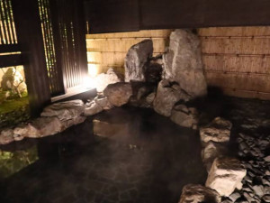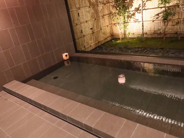 施術の前にアマンスパ内にある温泉で体を温めます。外のお風呂もありますが見どころは露天風呂です。