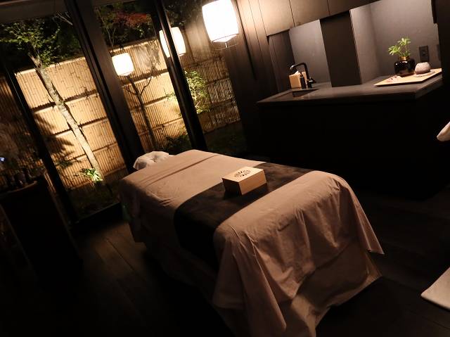 今回は椿の部屋でアマン京都シグニチャージャーニを楽しみます。スパの担当者の方も手馴れており、とても開業当日だとは思えないような説明をして頂きます。足を洗って頂き、息を整えます。途中で金箔が使われたりと色々と興が払われています。