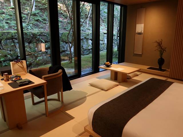 東京ドーム6個分の敷地に26部屋しかない京都の贅沢を極めた場所になりました。部屋までも色々と説明を受けながら移動します。