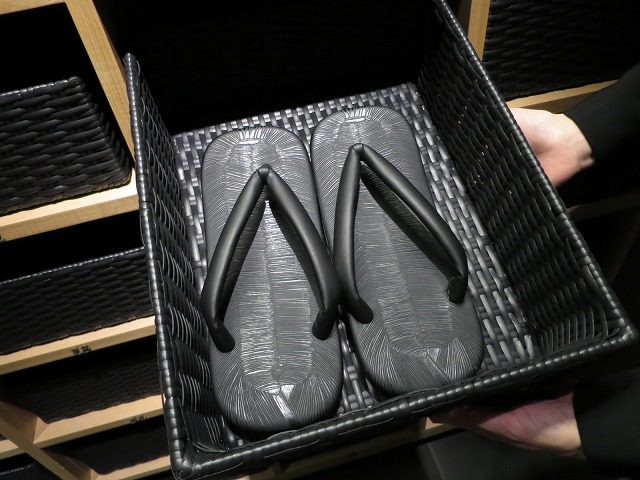ロッカールームも広々としておりグルーミングの設備も十分です。今回は昼も夜も私一人だけでしたが、次回来るときはそれなりに賑やかになっているのでしょうね!部屋に入るにはスリッパから黒い雪駄に履き替えます。