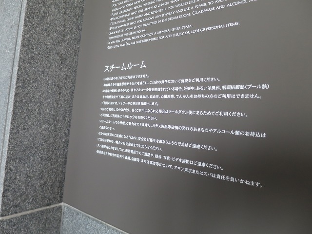 スパの前にはスチームルームで少し体を温めるつもりでしたが、意外に温度が高く部屋から出ると少しクラクラしてしまうほどです。そういえば夜に訪れるとアフリカから来たスタッフに流暢な日本語で向かい入れられ海外と逆の感覚に陥りました(笑)