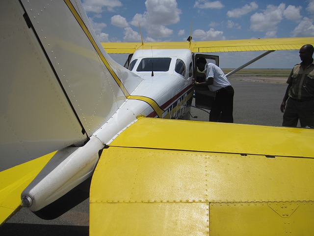 すこし乱暴なランディングでしたが無事に到着です。前回と同じ場所に駐機しますが、以前と違い厳戒態勢で兵士が周りに居ます。何事かと思ったらケニヤの首相の飛行機が丁度出発するところだったらしいです。