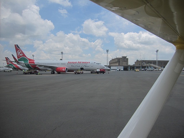久しぶりに浮揚感のあるフライトを楽しめました。一時間でナイロビの国際空港に直接乗り込みます。ただし早すぎましたがね・・・