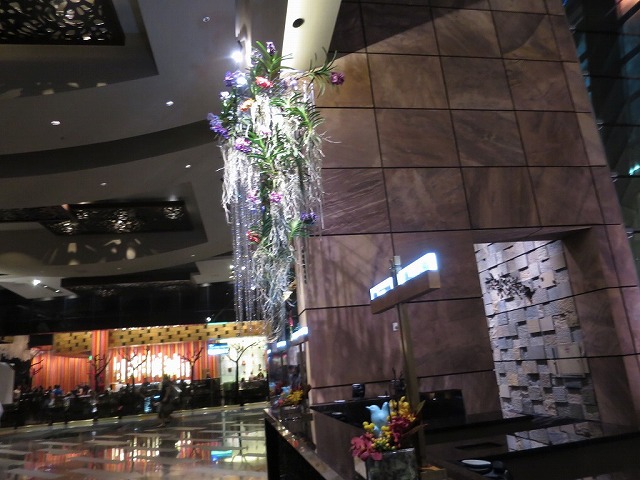 ホテルの車で入っていないので、私が誰か認識されていません。つまり普通にチェックインします。大きなロビーで数十人が待っていましたが、手慣れたもので「あっ」と言う間に私の順番が来ます。パスポートを渡して10秒後に・・・「建物が違う」と言われました。なるほど・・スイートはそもそも棟が違うそうです。面倒なのでそのまま普通の部屋のチェックインをお願いしてしまいます。普段ならスイート側のチェックインに興味があるのですが、疲れていて余裕がありませんでした・・