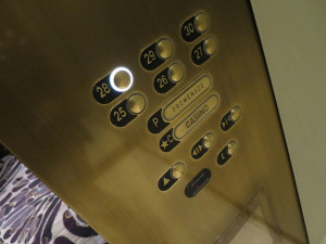 チェックインが終わるとそのままスタッフがスイート棟の部屋までアテンドしてくれます。スイート棟のエレベーターホールはちょっと重厚な作りですね。到着した部屋は28036になります。かなり巨大なホテルですね。