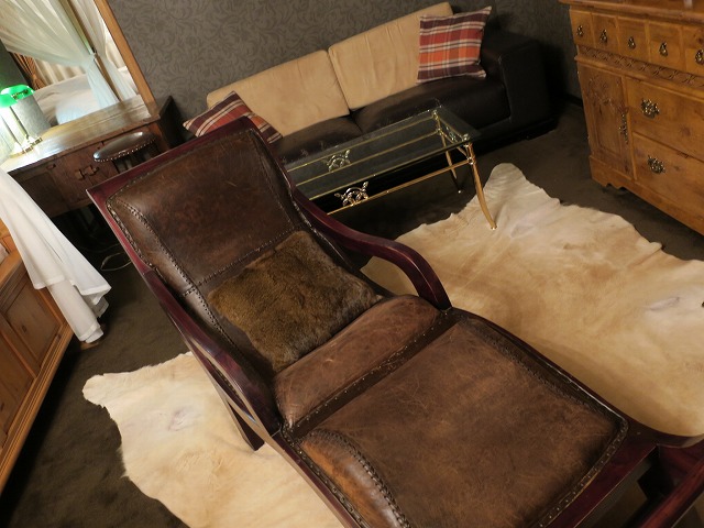 ベッドと並んで気になるのが真ん中のラウンジャーです。下の皮と相まって注目度満点です。しかも・・横になると意外とリラックスできます。良いですね!こんな風に持ってくるとは大胆です。