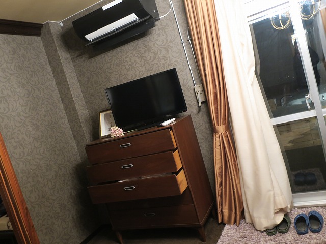 先ずは扉を開けますが、この扉は駄目ですね・・見た一瞬は帰りたくなるような・・どこかの保養所の扉に見えます。これも理由が後からわかります。しかし中に入ると一安心です。良い雰囲気でまとめられています。もっとも心配していたカビ臭さは一切なかったので部屋も安心して滞在できそうだと理解できました。