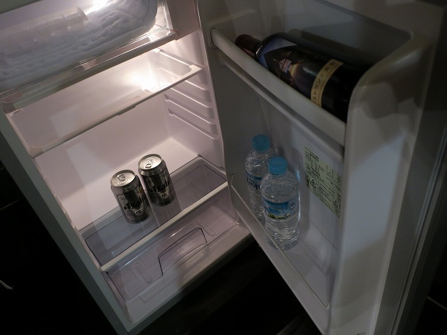 クローゼットの中には冷蔵庫があります。インペリアルルームに宿泊すると飲み物やスナックはコンプリメントとの説明を受けていたので喜んで開けますが・・・ビール二本にミネラルウオーター2本です・・・これは駄目でしょう!山奥の滞在で近くにコンビニも無く、ルームサービスが提供できないのであれば、この部分は厚くしておいて欲しいと私は思います。