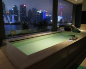 ミニバー等もこちらにセットされており、冷蔵庫も十分な大きさの物があり、飲み物も十分な数が準備されています。私はペリエがあれば普段は十分なのですが、今回の滞在では甘さが欲しくなり、スプライトなども総て消費してしまいました。また中国らしくお茶のセットも置いてありました。今回はゴロゴロしている事が多かったので面倒なお茶を煎れる気にはなりませんでしたが、スタッフから「お茶を煎れましょうか?」と何回か確認されました。