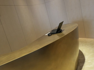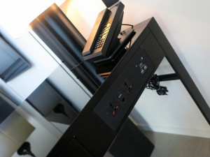 書斎机には電源のアウトレット・USB充電・イヤホンマイクそしてHDMIの接続ポイントやなどがあります。しかしよく見るとブルートゥースとの連携ボタンもありスマートテレビとの連携をよく考えてある新しい作りです。安定の設備だけでなく新しい試みにチャレンジしていますね。