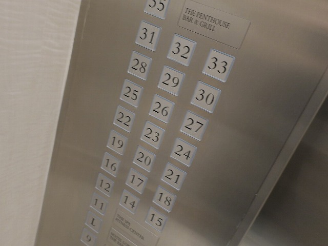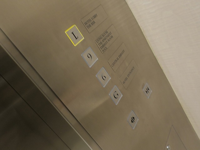 ロビー階にはエレベータで移動します。後で分かりますが、このホテルはエレベータが多いです。裏道のようなエレベータもありレセプション前を通過せずに部屋にたどり着く経路もあるので管理は大変でしょうね。