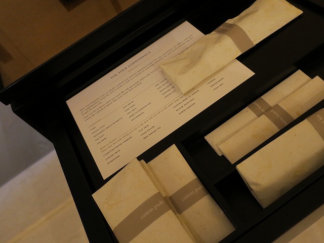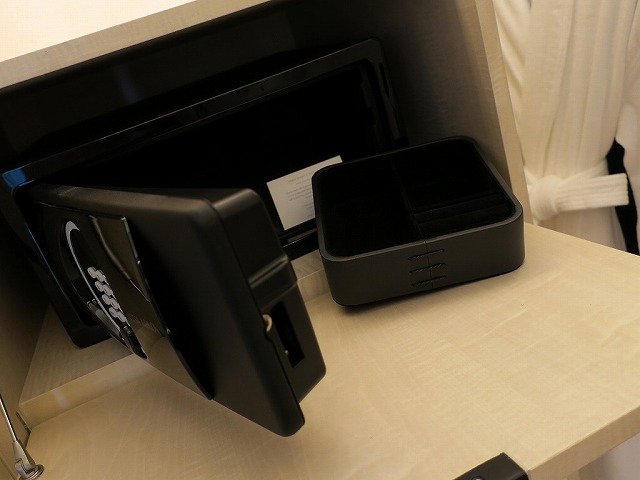 あとはセキュリティボックスやホテルの紙袋など必要な物は総て、しかもエレガントに揃っています。セキュリティボックスの中の小物入れもラウンドりのボックスも統一されているのは流石です。気が遣われていて良いですね!