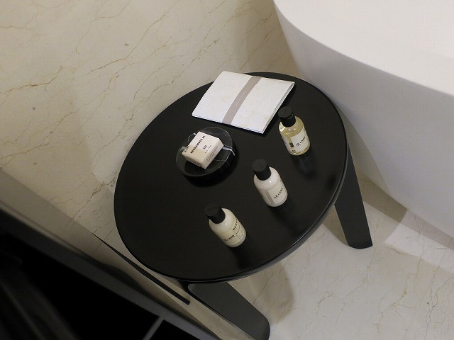 バスアメニティも充実です。いや多すぎます・・・ここまで明記されていると安心ですね。勿論記載が無くても相談には乗ってくれるそうです。シャンプーやコンディショナーはルラボのベルガモット22が使用されています。今回の製品はかなり油分を取るものなので私が苦手なタイプですね・・