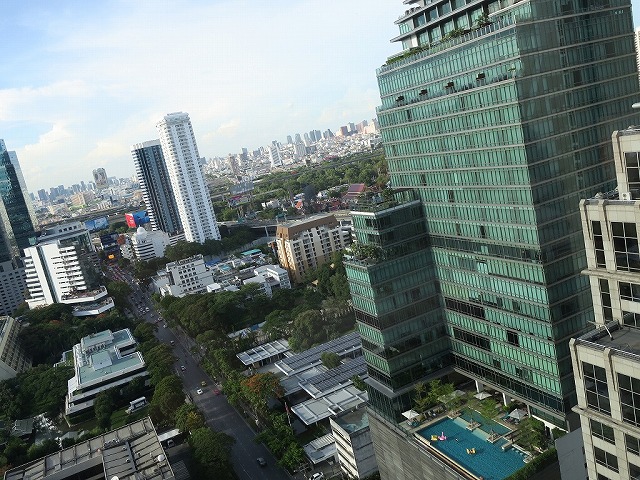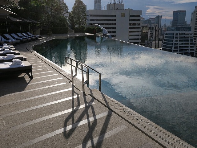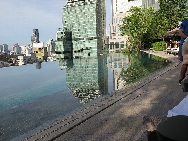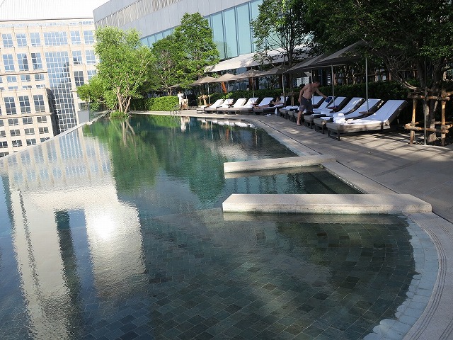プールはパークハイアット バンコクのアイコンの一つです。チェックイン後に直ぐに訪問して空気を楽しみます。雨季が近いバンコクにしては珍しく晴れ上がった時間を楽しみます。此処でもお客は二人しかいないのでゆっくりと時間を過ごせます。