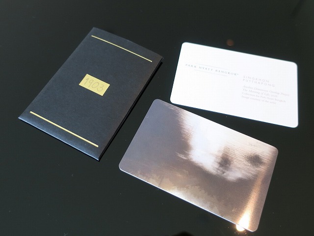 スワンナプーム空港で荷物を受け取り外にでた場所でパークハイアットのボードを出している人に声をかけると直ぐに走り寄りスースケースを受け取ってくれます。しかも二人でのアテンドです。車に乗る前にパスポートを出して、車に乗る前にチェックインは概ね完了します。車に乗る前に色々と確認してホテルに到着してからの手間を省いてくれているようです。なるほど之はありですね!